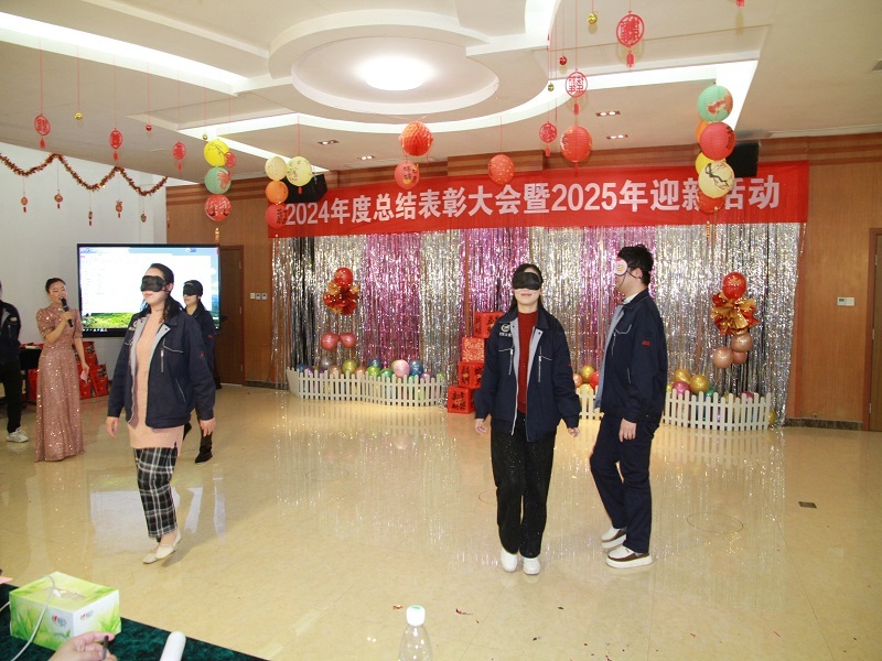在文艺节目表演的间隙,还穿插了丰富多彩的小游戏。击鼓传花、投壶、丢乒乓球、吹蜡烛、蒙眼踏步、套圈等游戏吸引了众多员工踊跃参与。现场欢声笑语不断,进一步拉近了员工之间的距离。